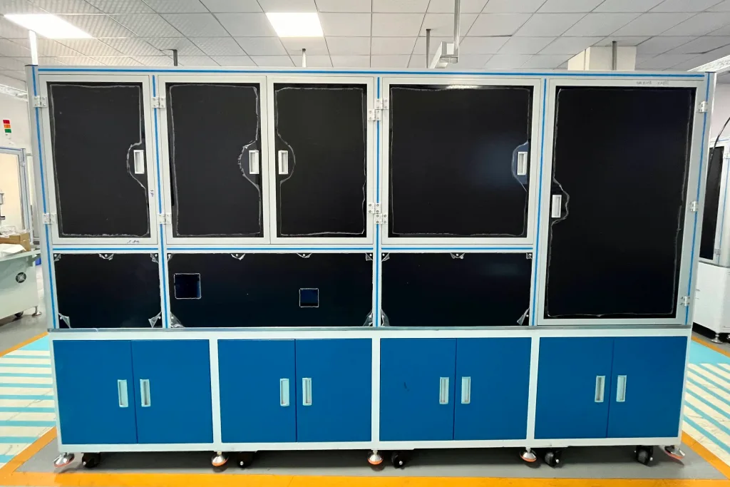 The equipment’s modular process is as follows: terminal feeding, cutting and preforming, wire crimping, then inserting into the housing with visual positioning. Next is seal ring assembly, followed by continuity testing and airtightness testing. After passing the tests, laser marking is done, and finally sorting and unloading.